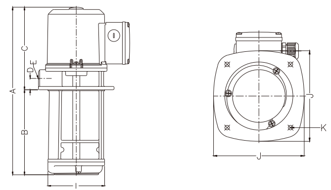 泵浦为单加压室、单叶轮的直立式浸水离心泵浦,泵浦与马达同轴设计,叶轮安装在马达延长之轴端上。