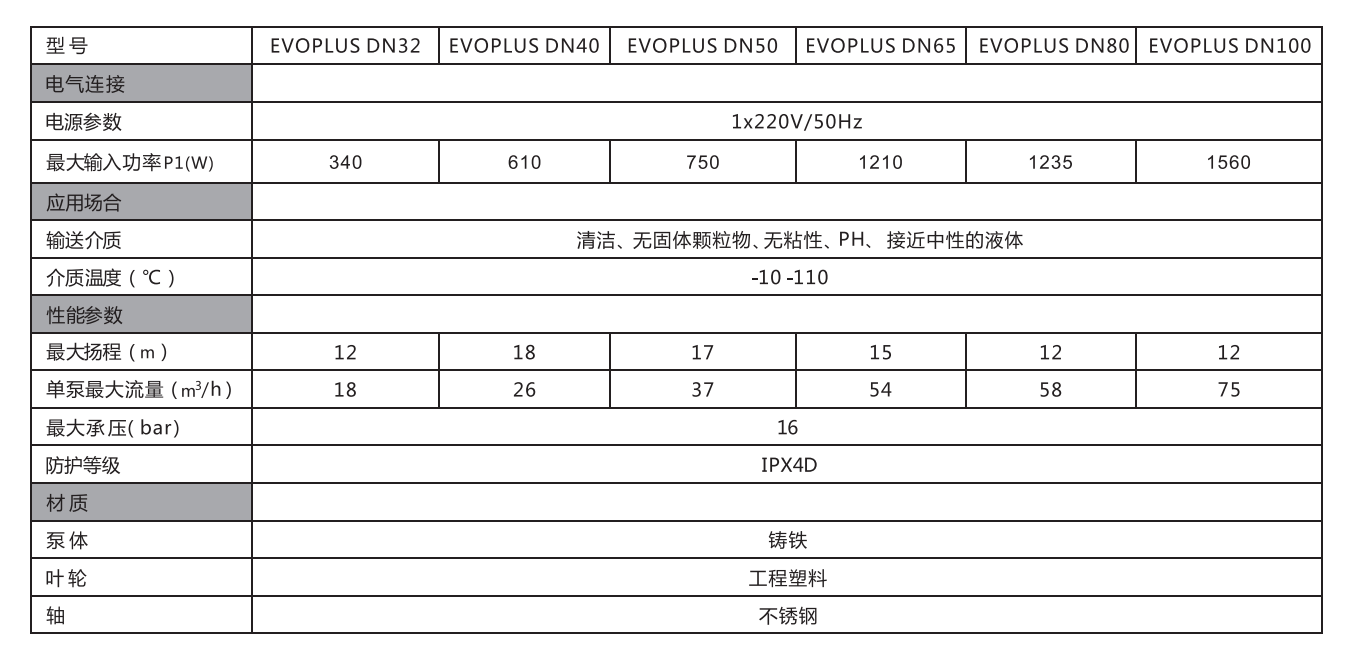 经济模式可在控制面板直接设置,扬程的预设值可最大减少50%. 所有的型号均可选择单泵和双泵系统,双泵系列的出水口配备自动旋 启式止回阀,避免单泵工作时,介质再循环。配备专用接插件,可简 单快速的实现设备的电气连接,单泵配备隔热壳体套件,可大大减少 热分散;直观的界面可实现对EVOPLUS的轻松设置,并提供及时反馈, 从而实现对运行参数的持续监控,符合人体工程学的布局,确保了循 环泵各功能的相互作用及其控制,倾斜45。的背光式用户界面,更易于 读取并便于在任何条件下进行设置。