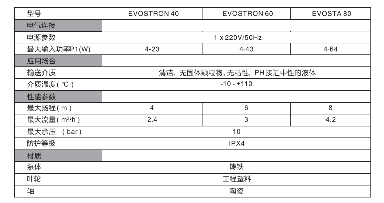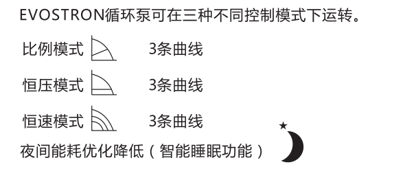 新型EVOTRON循环泵采用了先进的技术-永磁同步电机和变频器,从而确保在各种应用环境下的高效率,具有显 著的节能效果;新型EVOSTRON循环泵符合欧盟2009/125/Erp EC(旧版EuP) (EEI<0.23/2015).其特点是配有检测 采暖系统需求变化并自动调整循环泵性能从而始终确保最佳效率和最低能耗的电子装置。