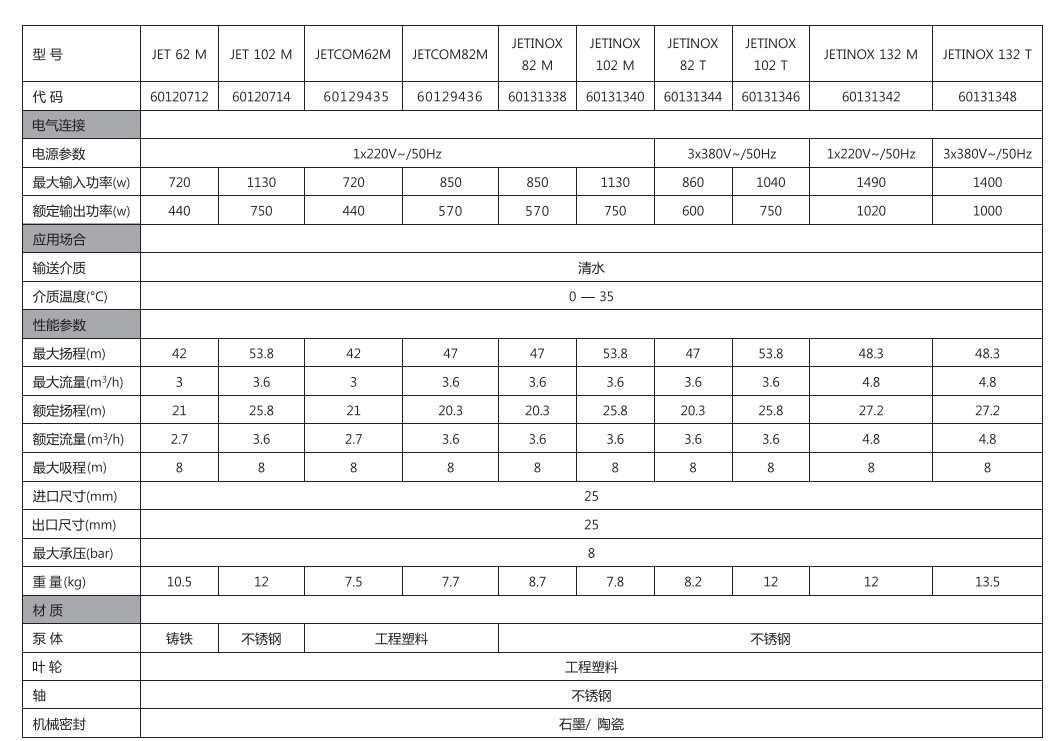 JET/JETCOM/JETINOX 系列自吸泵