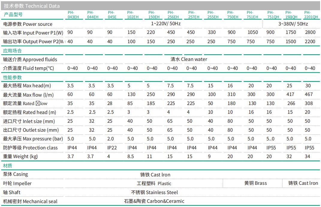 泵体:铸铁;叶轮:铸铁;轴:不锈钢;机械密封:石墨&陶瓷