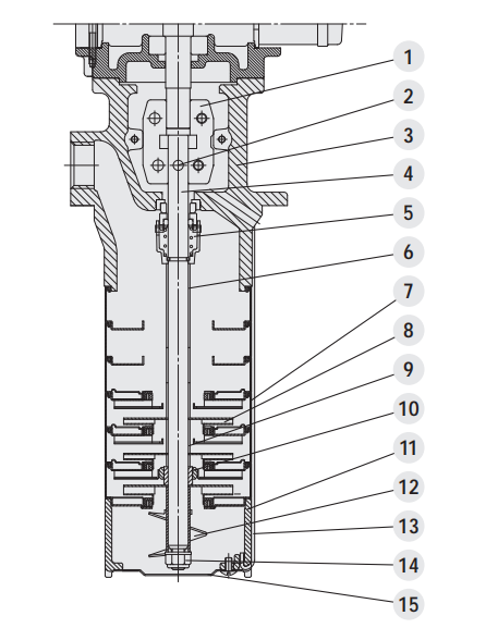 > 1、多段浸水式离心泵浦,马达与泵采联轴器耦合;