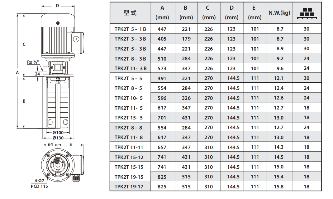 TPK2T技术参数规格表