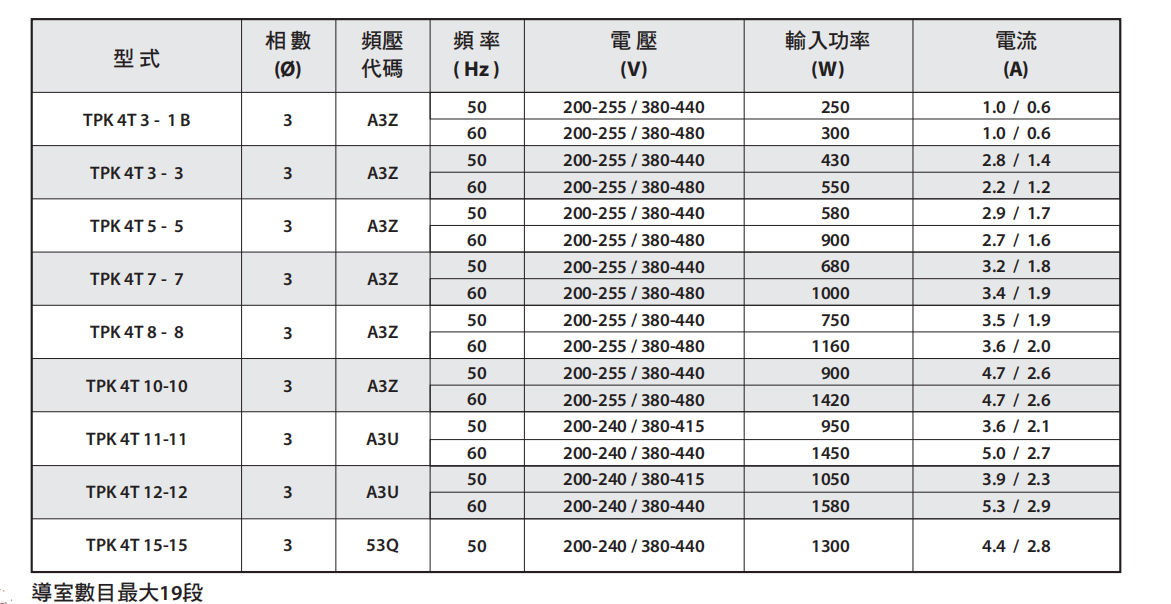 TPK4T技术参数规格表